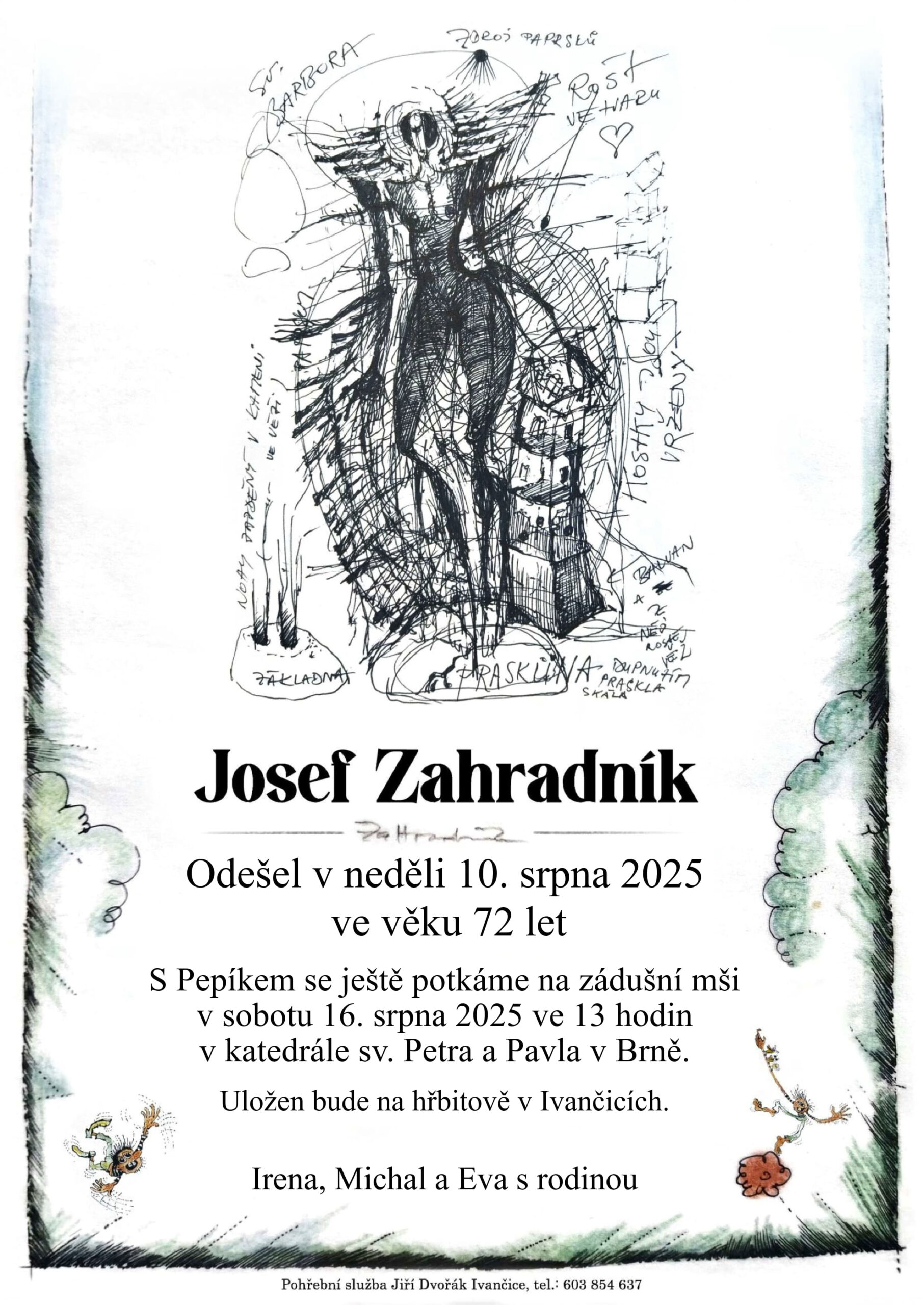 V neděli 10. srpna 2025 odešel ve věku 72 let pan Josef Zahradník…