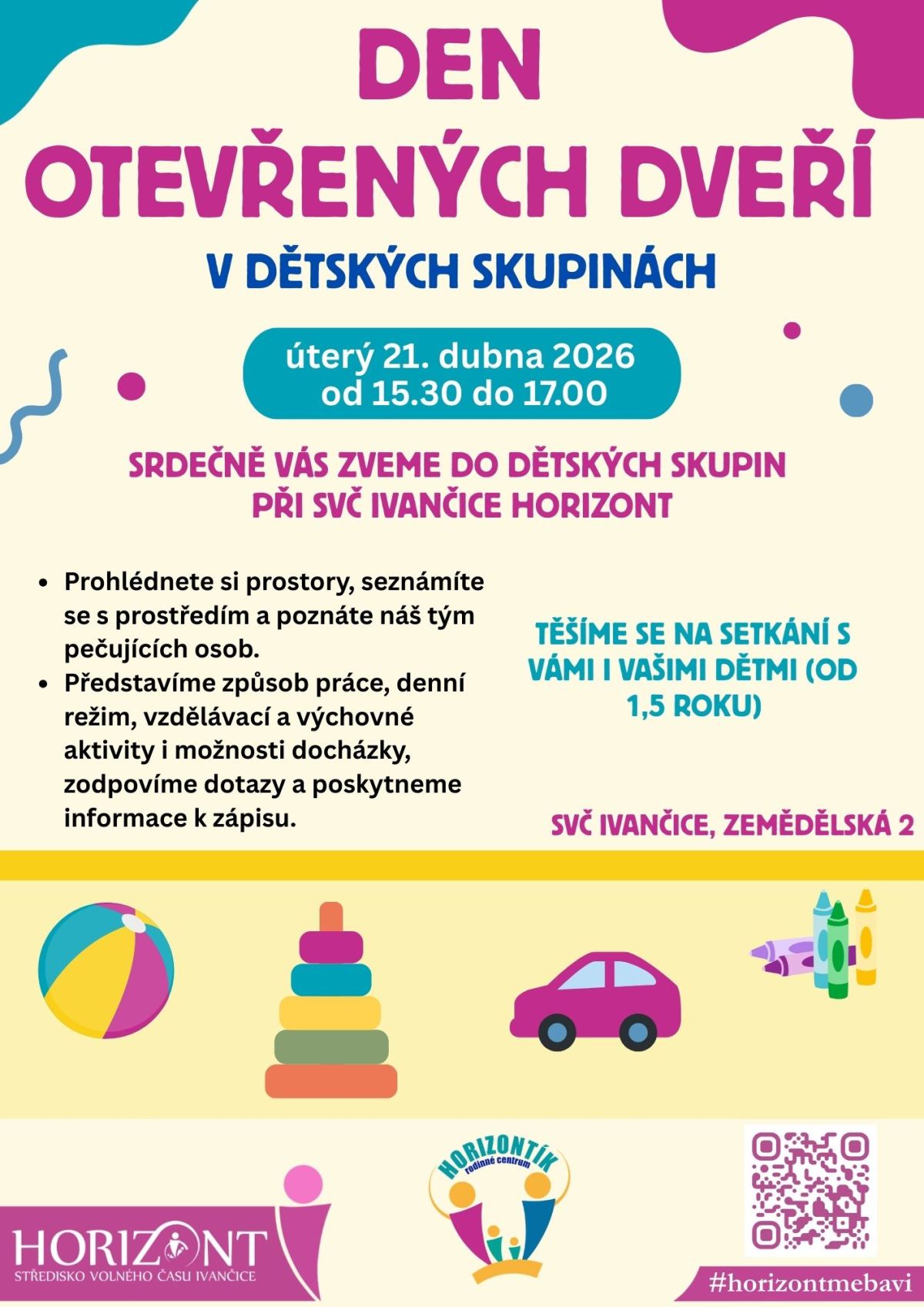 Těšíme se na setkání s vámi i vašimi dětmi (od 1,5 roku)